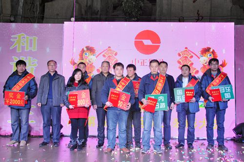 2013年12月29日下午17:00,中正集團2014年“和諧中正、幸福家庭”元旦晚會成功舉辦。集團員工及家屬歡聚一堂、其樂融融,共同欣賞精彩紛呈的晚會節(jié)目,處處洋溢著濃濃的節(jié)日氣氛。晚會上,集團公司副總經理王曉東同志致新年賀詞,集團公司董事長李廣法同志、副總經理葉恒剛同志、副總經理王曉東同志為集團2013年度10名優(yōu)秀員工頒獎。